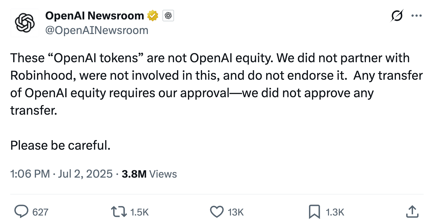 These tokens provide exposure to two of the world’s most sought-after private companies. However, they do not represent direct ownership of OpenAI or SpaceX shares. Instead, the tokens represent a financial claim linked to an intermediary structure.