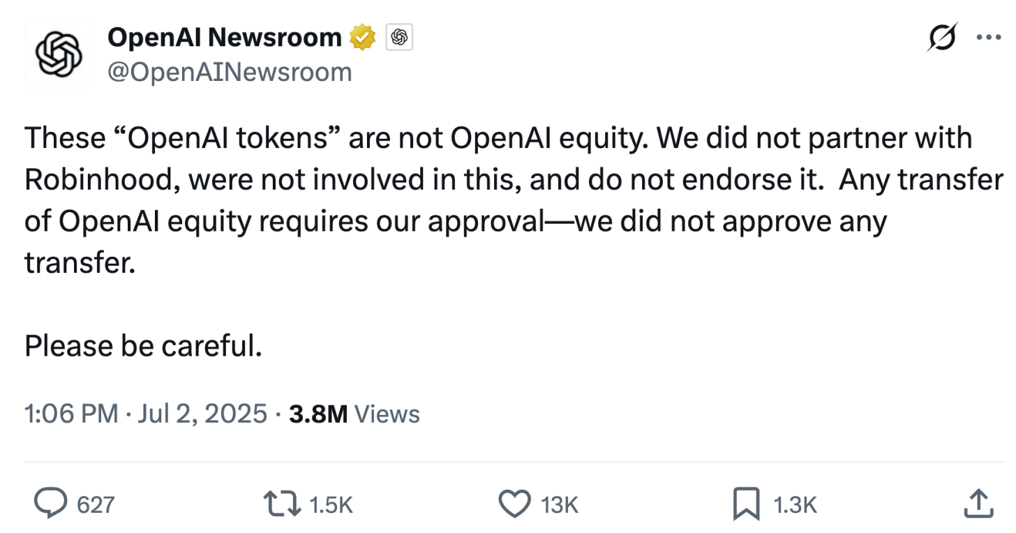As one example, Robinhood recently announced a promotional distribution of OpenAI and SpaceX tokens to eligible users in the European Union.
