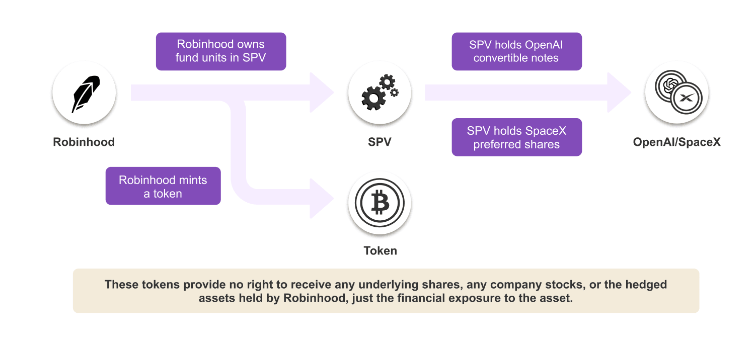 In this structure, an SPV holds the underlying shares while tokens represent a financial claim on that vehicle. This allows issuers to offer investors exposure to private companies that were historically limited to venture capital firms and institutional investors.