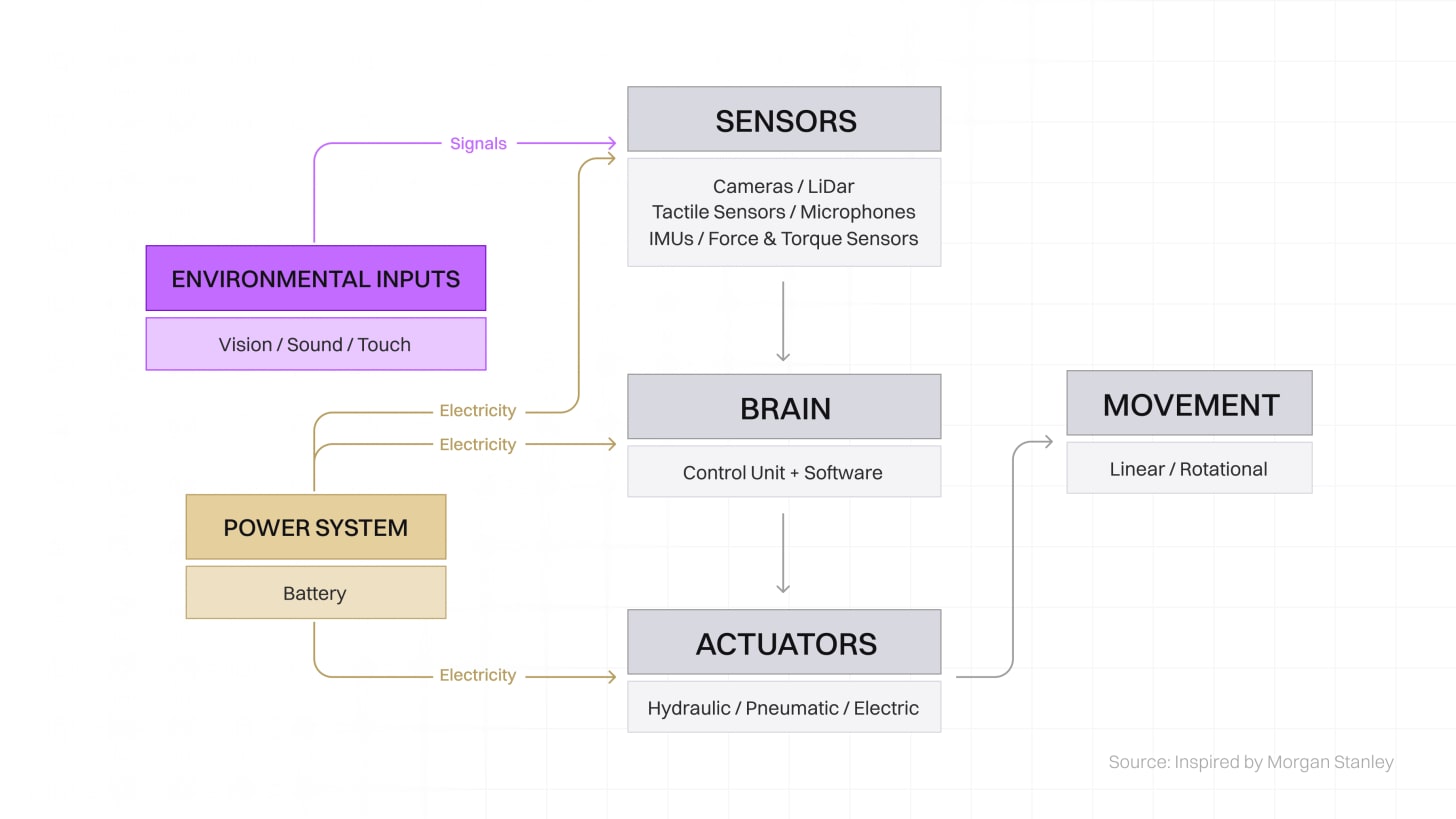 Control Unit & Software (The Brain): The intelligence layer that processes sensor data to execute complex functions.