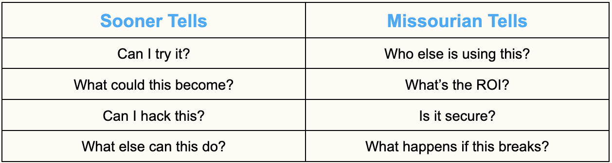 Sooners and Missourians can sit in the same demo call and look identical on paper. Here’s how they actually behave.