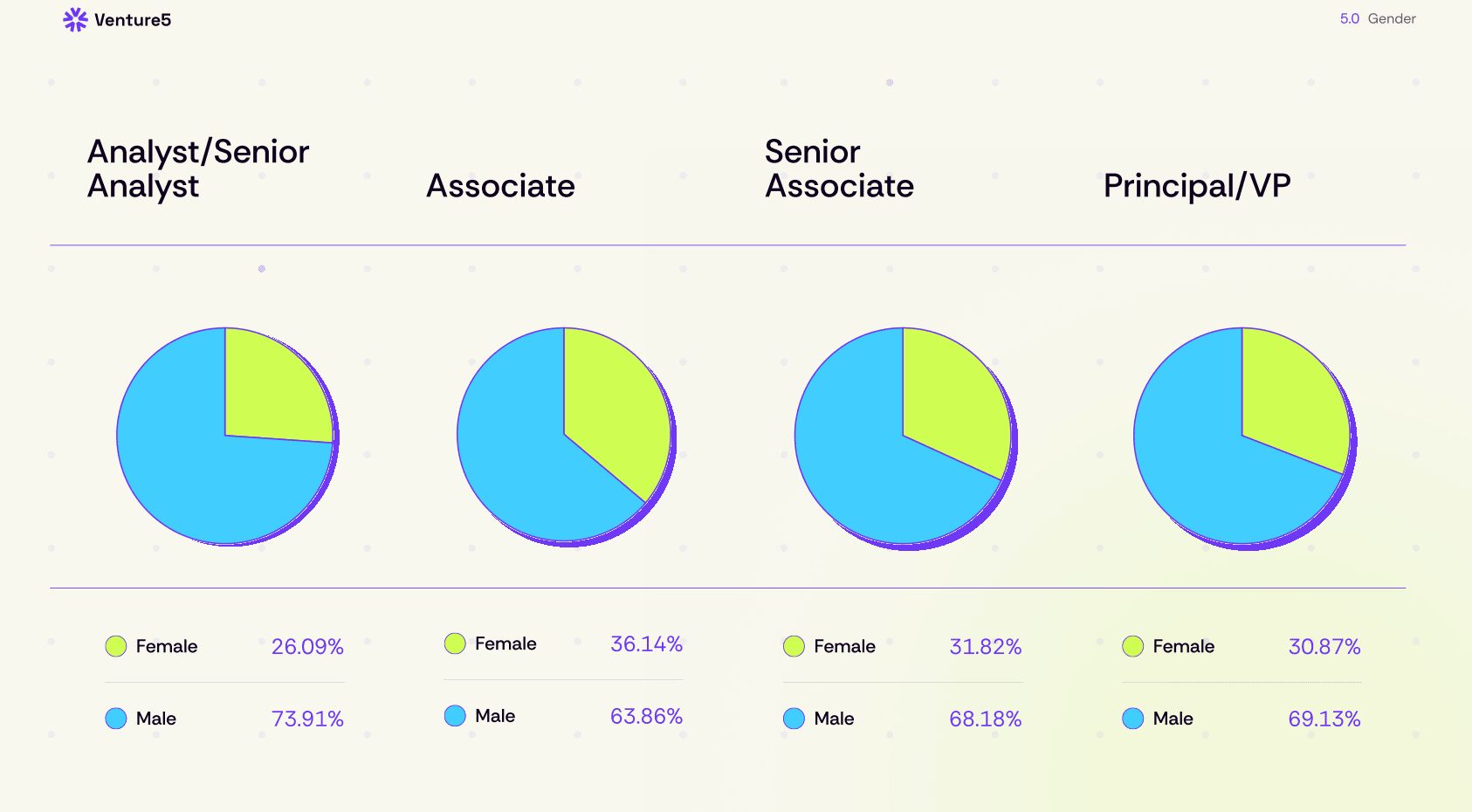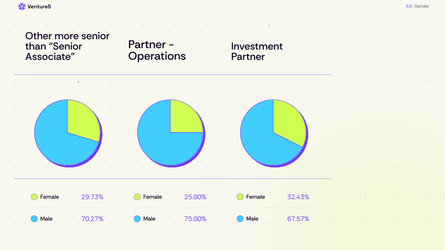 Men still vastly outnumber women at venture capital firms. Women make up the largest share of associate jobs at 36%.