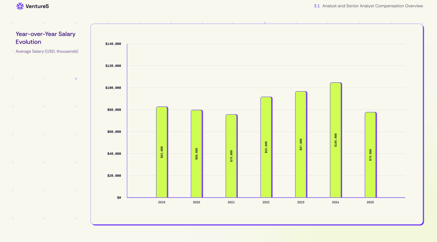 Analyst compensation fell by more than 25% from 2024 to 2025 with analysts last year receiving an average salary of $78,000.