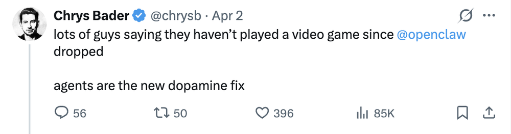 That said, there’s a worrying dynamic occurring within a segment of today’s AI “power users”: many early adopters of AI (and agents, in particular), are seemingly getting addicted to it.