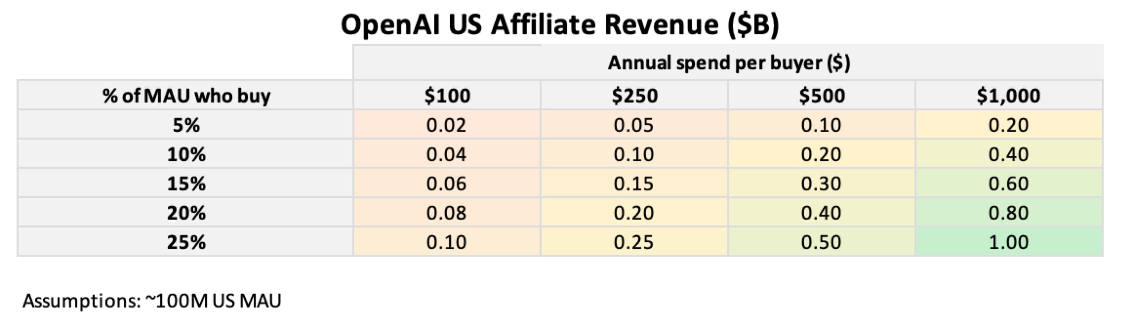 Affiliate commerce and native checkout is a relatively new phenomenon and so may take a while to get going and as you can see need aggressive adoption and annual spend to get to even a $1B business.