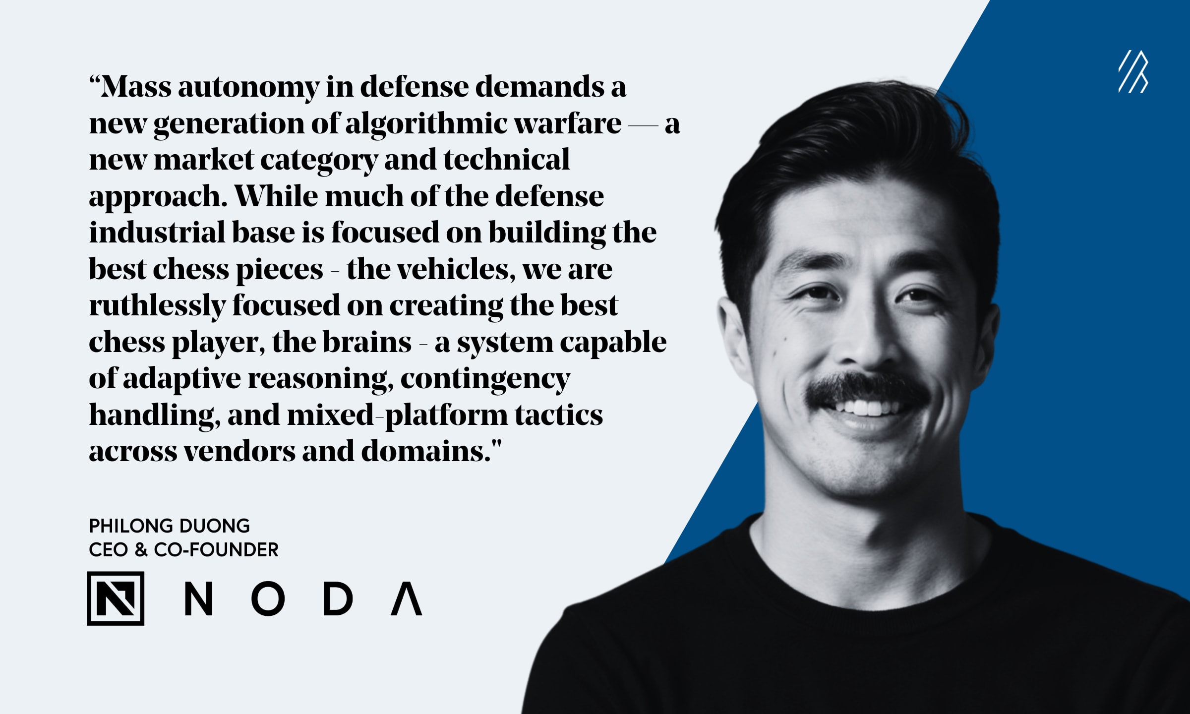 Alongside our co-investors Outlander and Crosslink, as well as Booz Allen Hamilton Ventures, Alumni Ventures, Bloomberg Beta, and Draper Associates, we’re pleased to lead NODA’s $25 million Series A. We look forward to partnering with Philong, Dave, and the NODA team as they build the future of collaborative autonomy.