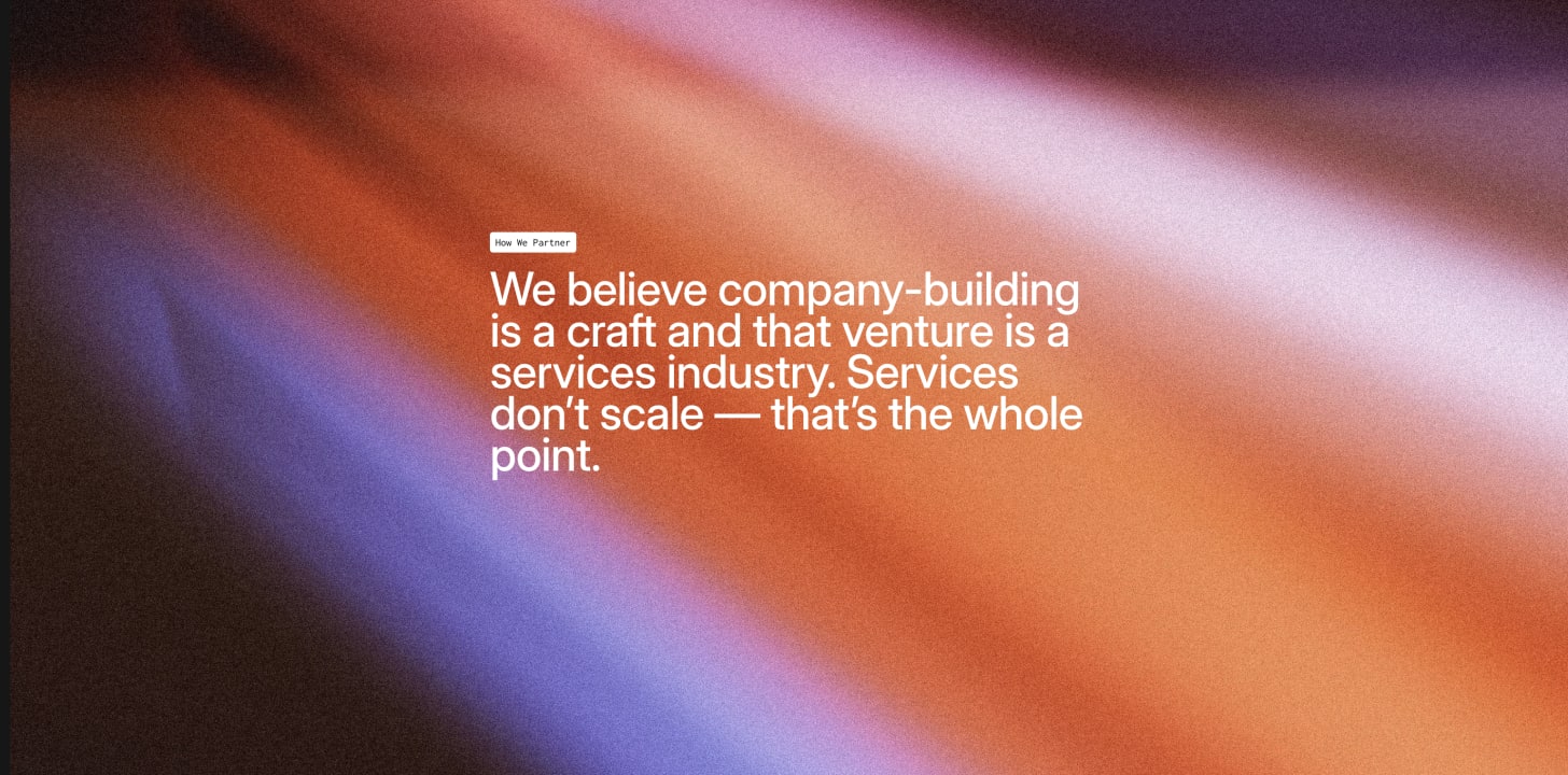 We believe that venture is a services industry, and services don’t scale. Some firms position themselves as engines of scale, while we position ourselves as the opposite. We do things that don’t scale, intentionally: we give our founders tailored resources and attention toward finding product/market fit and getting their company off the ground. This is why founders choose us.