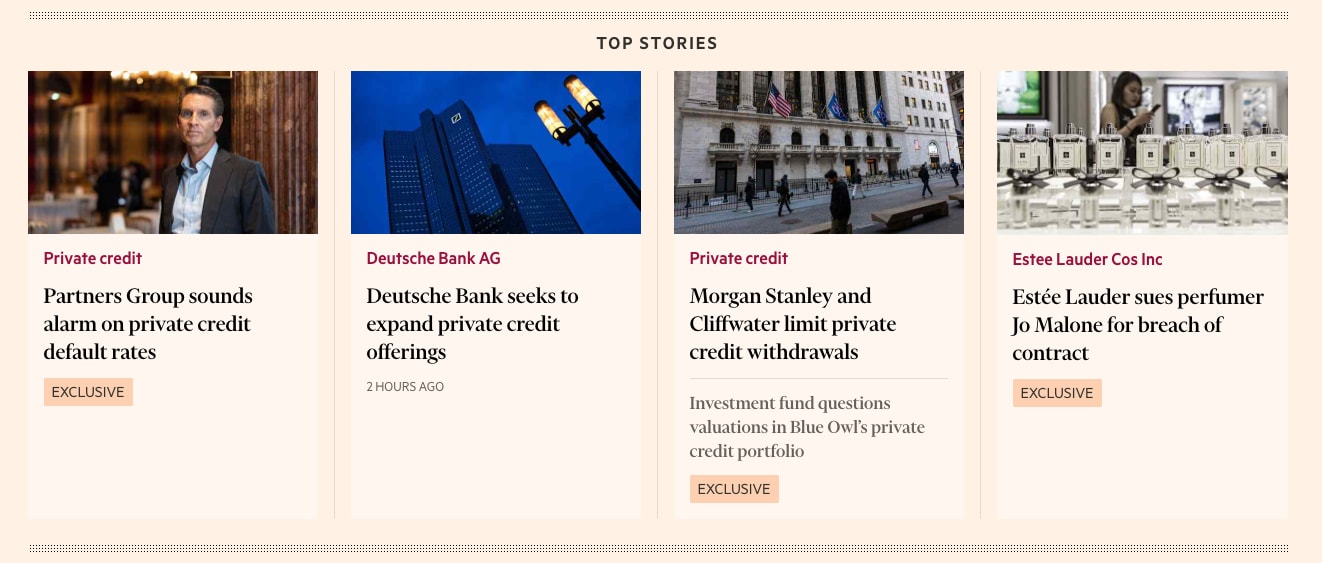 I wasn’t going to write about private credit this week. I was all set to get stuck into a piece about maritime insurance. I even had a name for it: The Underwriters of Hormuz. But it’s not often three of the top four stories in the Financial Times line up about a theme we’ve explored, so here we are (though if readers want to discuss what I learned about maritime insurance, drop me a line.)