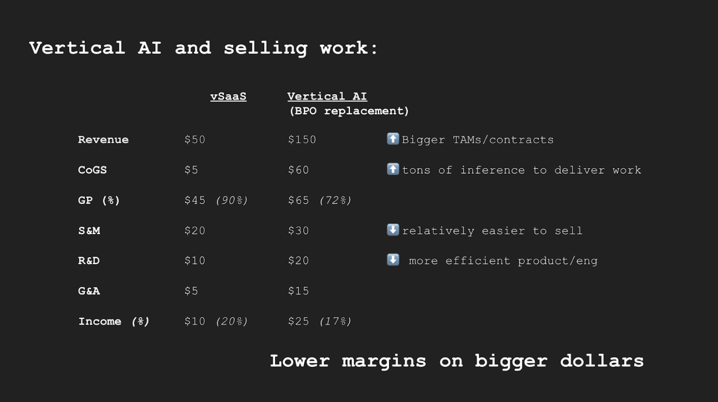 The bull case for vertical AI is basically the BPO replacement trade whereby you can earn your way into much bigger TAMs/contracts because you sell into a services/headcount line rather than a software line item.