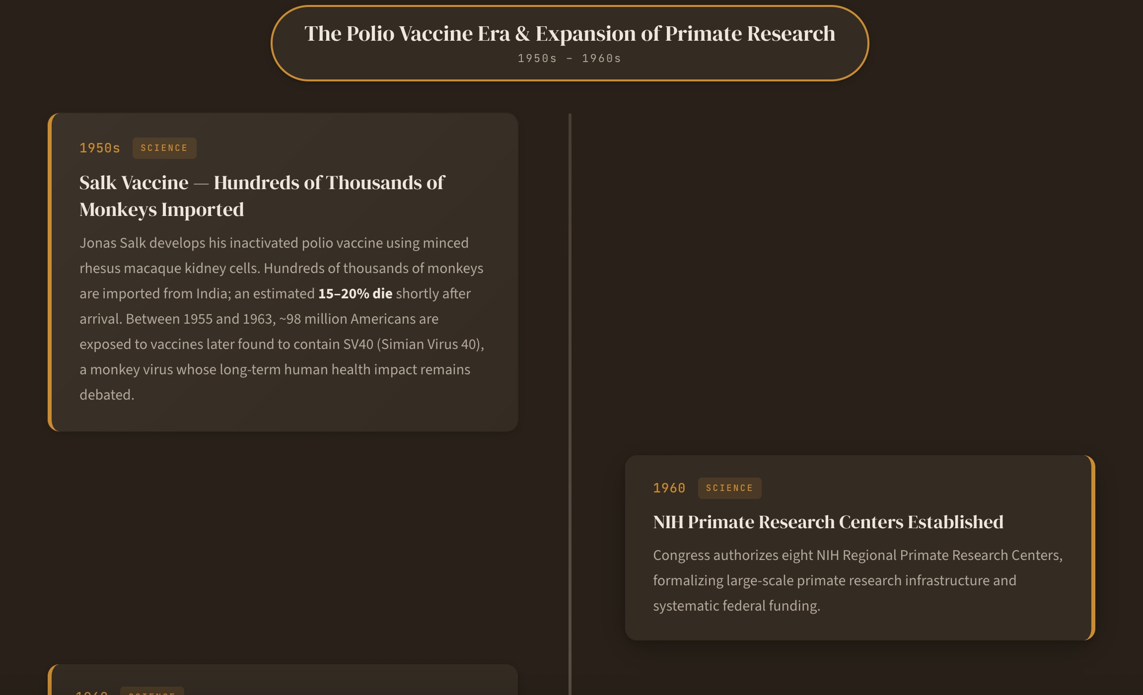 To accompany this post, I’ve created an interactive timeline tracing the evolution of NHP usage in clinical research – check it out here.