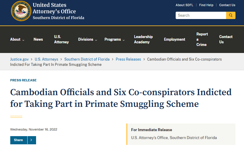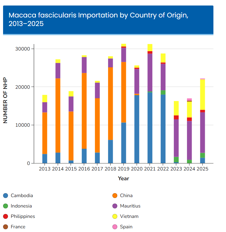 US researchers scrambled to find other suppliers. At first, Cambodia filled the market gap left by China and quickly became the new number one supplier to the US. But in 2022, scandal struck as Cambodia was identified as the hub of an international primate smuggling ring, in which wild cynomolgus macaques were being falsely labeled as captive-bred and illegally exported. Cambodian macaque supply shut off almost as quickly as it had rushed on to the scene.