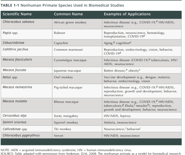 Biologics are large, complex, and difficult to characterize molecules created through multistep biologic processes… These new treatments for cancer, autoimmune disease, heart disease, infectious disease, post-transplant organ rejection, and genetic disorders depend upon animals closely related to [humans] … Therefore, it is only currently possible to assess the safety and efficacy for biologics intended for human patients in other (non-human) primates.