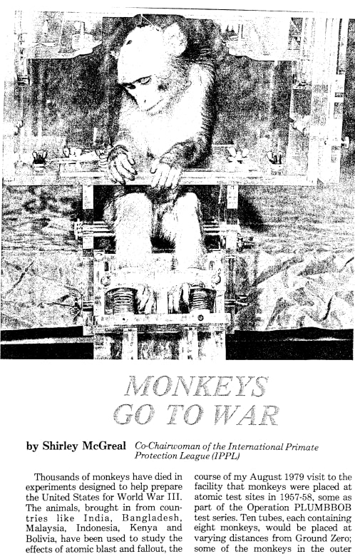 When reporting in the 1970s revealed that the Air Force had been testing the effects of radiation exposure on monkeys over the preceding decades, activists like Shirley McGreal brought this to the attention of Indian authorities. Exports of monkeys to the US were swiftly banned in 1978.