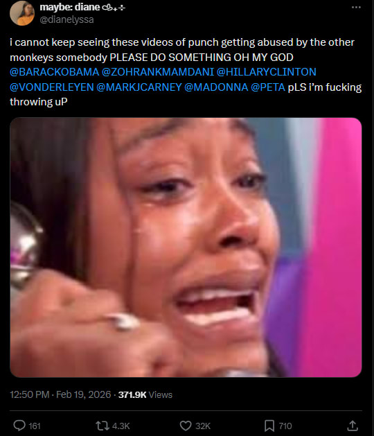 The staggering difference between these two stories feels like an extreme example of the Identifiable Victim Effect – thousands of macaques used in research are a statistic, Punchy is a tragedy.