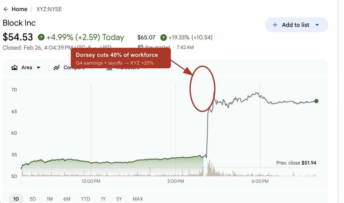 So narratives move markets. The real question is: what do you do about it? Jack Dorsey just showed us. He admitted he overhired during COVID, the dual company structure mistake, the complexity bloat from lending, banking, and BNPL.