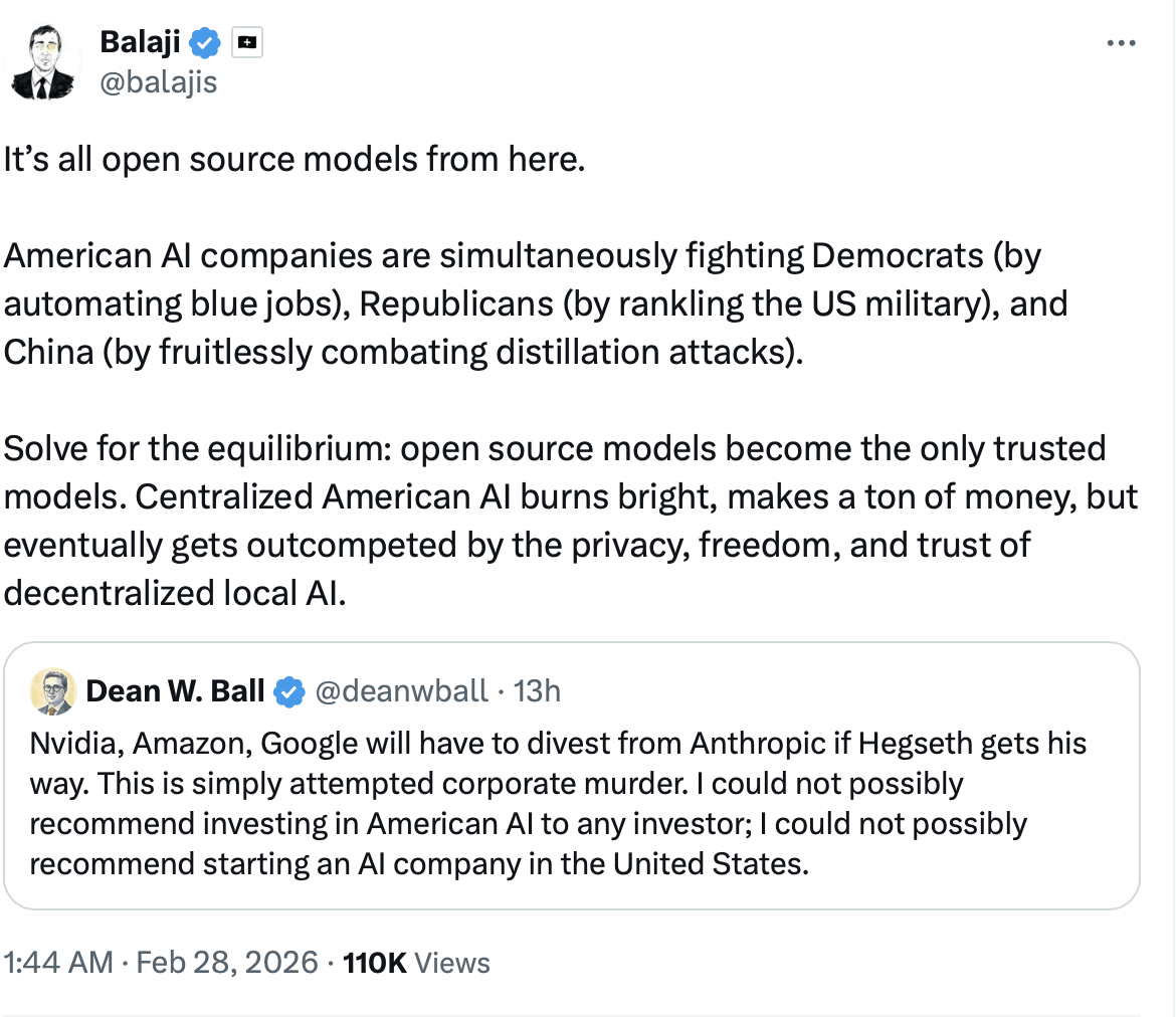 #massive news – Anthropic as supply chain risk puts it on same footing as Huawei – what are downstream implications?