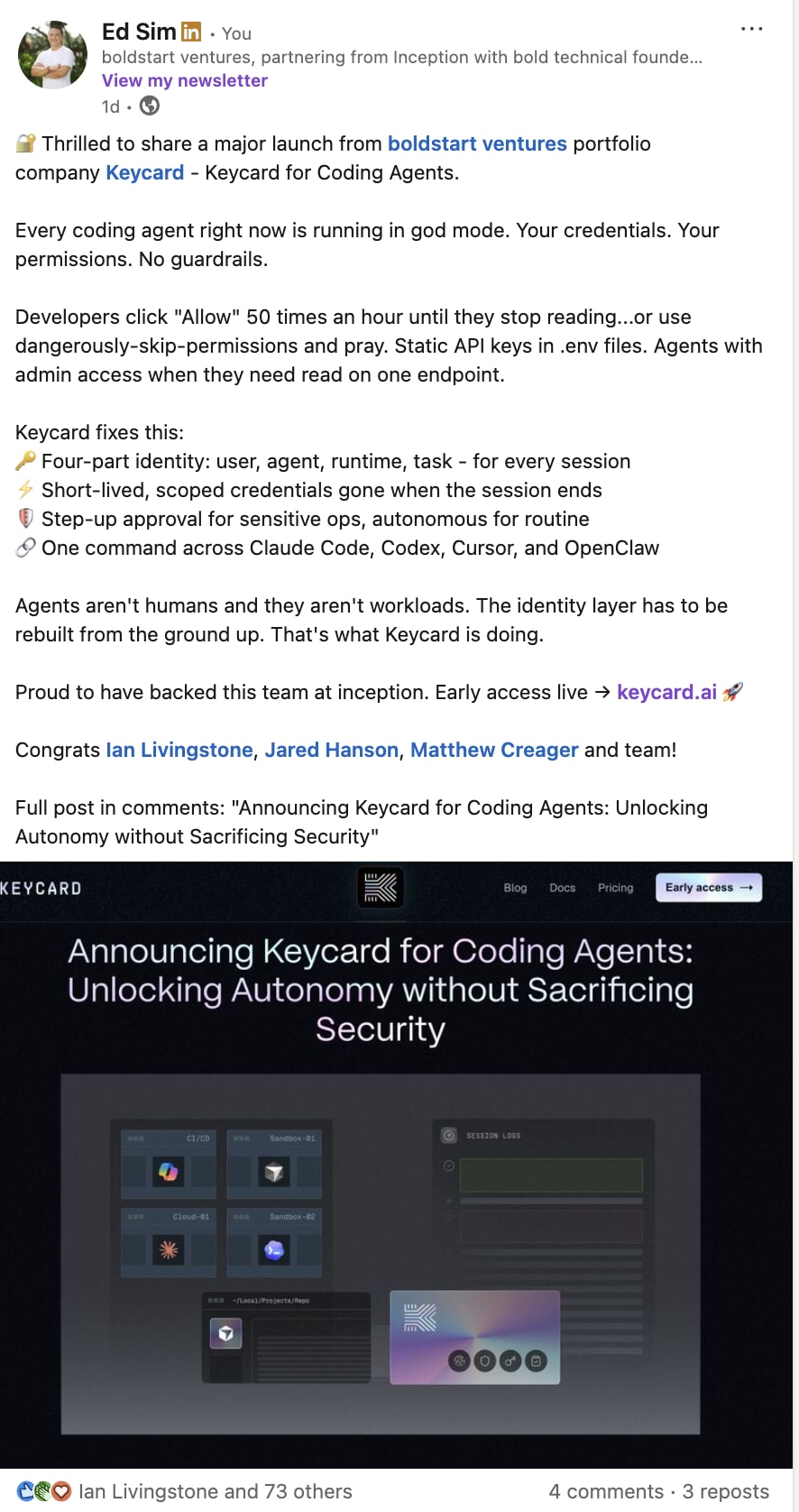 Keycard launched Keycard for Coding Agents – replacing god mode access with scoped, short-lived credentials and real governance for AI tools like Claude Code and Cursor.